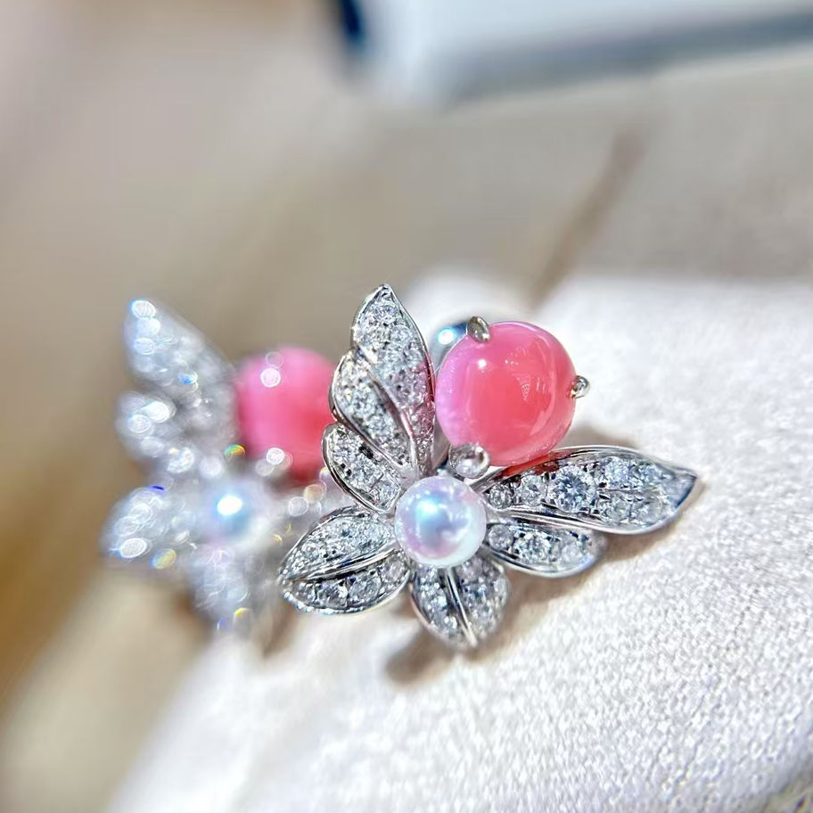 - Rare & Radiant – A delicate butterfly rests beside your ear, adorned with a stunning 2.28ct Conch Pearl in a soft, flattering flamingo pink—nature’s finest blush.