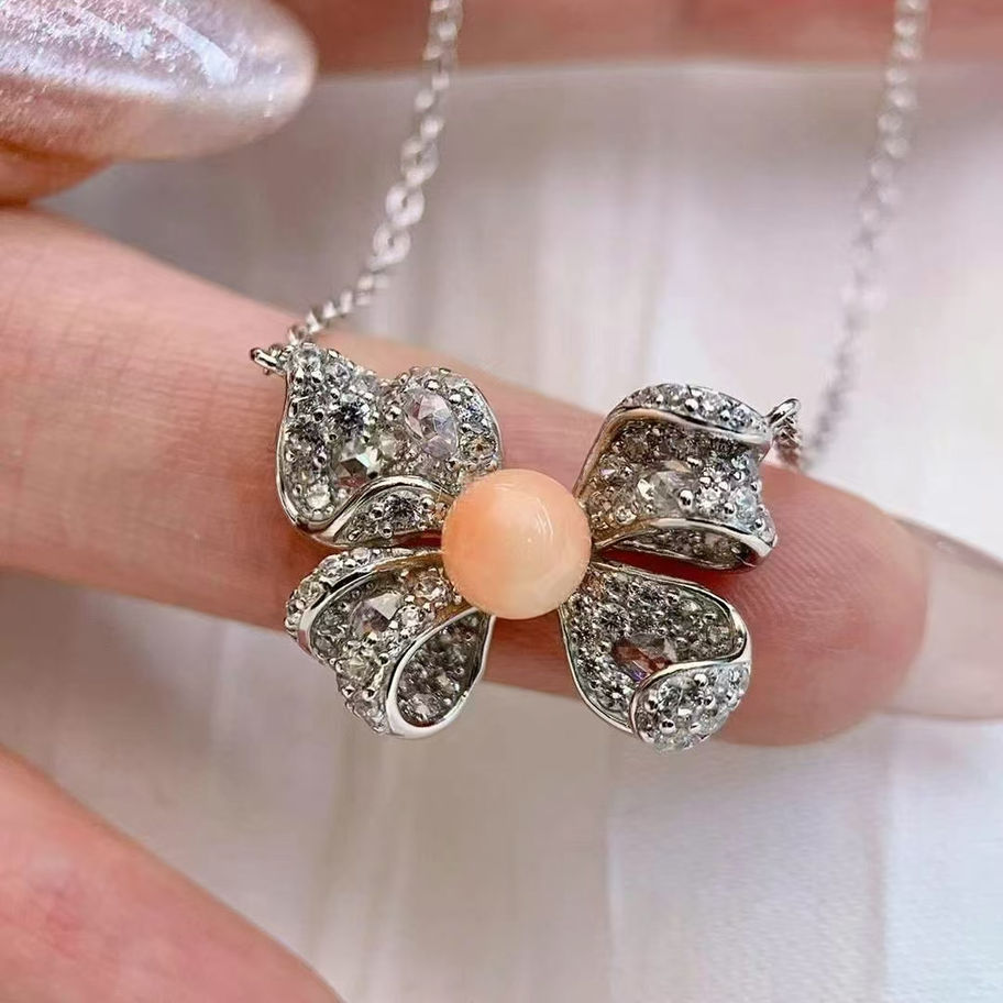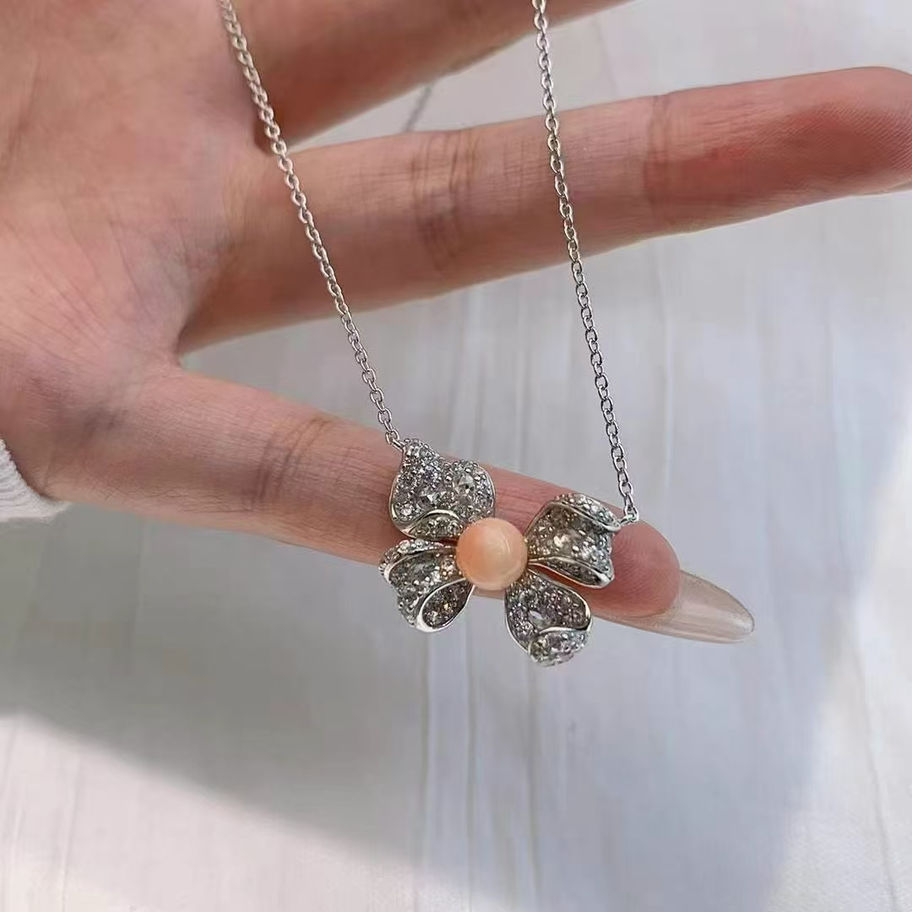 Pink Queen Shell Bow Tie Necklace Set